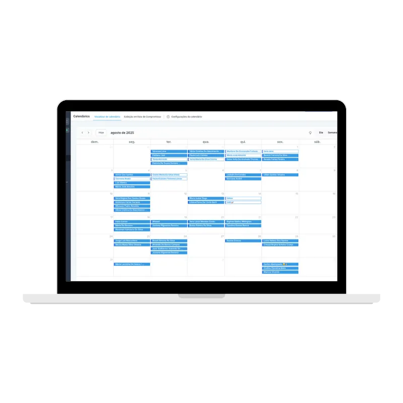 Reduza suas faltas em até 60% e maximize a ocupação da sua agenda com lembretes automáticos estratégicos, utilizando Lembretes Automáticos no WhatsApp em Horários Estratégicos. Veja todos os agendamentos, horários livres, pacientes confirmados e pendentes em um calendário visual e intuitivo. Sincronização Perfeita com Google Calendar. Sua agenda pessoal e profissional sempre sincronizadas em tempo real em todos os dispositivos (celular, tablet, computador).