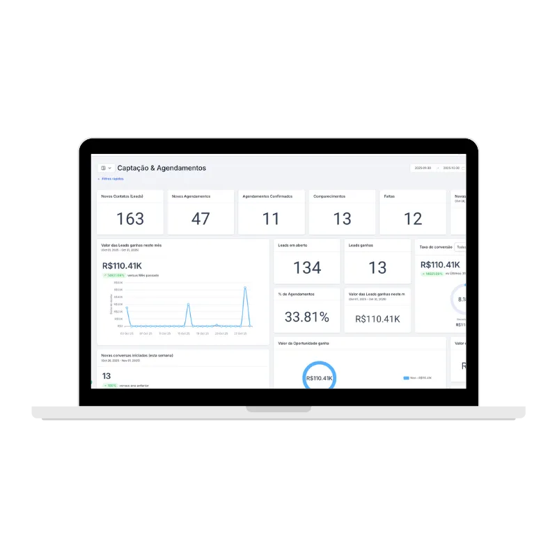 Você terá acesso a um sistema completo e em tempo real para monitorar todos os detalhes do funil de vendas. Isso inclui o número de contatos captados, o processo de qualificação dos leads, o número de agendamentos realizados, presenças confirmadas e tratamentos fechados. Com relatórios claros e dashboards intuitivos, você estará sempre atualizado sobre o desempenho das campanhas e poderá visualizar, de forma transparente, o impacto direto das nossas estratégias no crescimento da sua clínica.