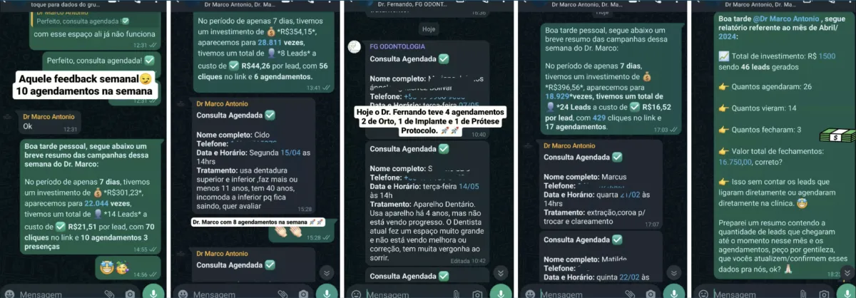 ✅ Análise em Tempo Real: Saiba exatamente qual campanha, público, palavras-chaves (Google Ads) e quais criativos ou anúncios estão gerando os melhores resultados em agendamentos, presenças e tratamentos fechados e escale seu crescimento.